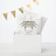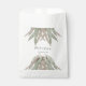 This design features rustic eucalyptus leaves. The eucalyptus greenery is complimented by elegant black typography. The dusty green tones of the eucalyptus leaf create a rustic country woodland garden feel. Elegant wedding favour bag design with modern elements. Matching wedding invitations and other stationery items are also available.