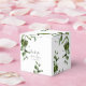 This design features rustic eucalyptus leaves. The eucalyptus greenery is complimented by an elegant black text. The dusty green tones of the eucalyptus leaf create a rustic country woodland garden feel. Elegant wedding favour box design with modern elements. Matching wedding invitations and other stationery items are also available.