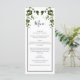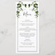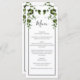 This design features rustic eucalyptus leaves. The eucalyptus greenery is complimented by an elegant black lined border. The dusty green tones of the eucalyptus leaf create a rustic country woodland garden feel. Elegant wedding menu card design with modern elements. Matching wedding invitations and other stationery items are also available.