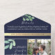 Celebrate your love with our elegant all-in-one wedding invitation, featuring a rustic and botanical design in gold and navy blue. Adorned with watercolor eucalyptus greenery, this invitation includes a charming photo of the couple, along with space for your wedding details and RSVP. Perfectly blending boho sophistication with practical functionality, it sets the tone for a beautiful and memorable day.