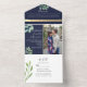 Rustic Eucalyptus Navy Blue Wedding All In One Invitation