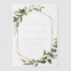 This elegant rustic vellum wedding invitation features a gold faux foil geometric frame decorated with eucalyptus greenery. The word "wedding" appears in calligraphic script. Customise the charcoal grey text with the names of the bride and groom and the wedding details. (The bottom photo card layer, sold separately, is available in the collection below.)