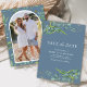 Amaze your guests with this elegant save the date featuring beautiful eucalyptus leaves and modern typography. Simply add your event details on this easy-to-use template and adorn this card with your favourite photo to make it a one-of-a-kind save the date card.