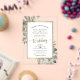 Invite your friends and family to celebrate your wedding with these gorgeous acrylic invitations. The design features hand painted watercolor eucalyptus and pine sprigs in muted shades of gold, sage, and grey, with a faux foil golden frame and elegant script lettering with flourishes or swashes on the ends of the letters. Available in both clear and frosted acrylic, these beautiful invites are sure to make a lasting impression.