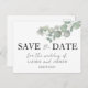 Simple and elegant save the date postcard. Featuring sage green eucalyptus with classic and stylish save the date calligraphy. Easy to customise with your unique information.
