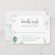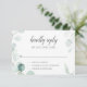 Invite your guests to respond with grace and style with our beautifully designed Wedding RSVP Card. At the pinnacle of this elegant card, the word "Kindly" is artfully inscribed in a modern script, symbolising the gentle nature of your request. This is harmoniously paired with a delicate watercolor eucalyptus motif, weaving in a touch of natural serenity and understated sophistication. The design perfectly captures the essence of a refined, nature-inspired wedding. This RSVP card is more than a mere formality; it's a tasteful expression of your wedding's theme, seamlessly blending the charm of modern calligraphy with the tranquil beauty of the eucalyptus, ensuring your guests feel a part of your special day from the very moment they reply.