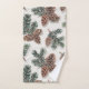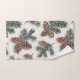 Enhance a cabin-style bathroom with this bath towel set, featuring a rustic evergreen forest design. The pattern includes pinecones on a white background and is suitable for both the Christmas season and winter months.