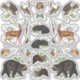 Coniferous pine forest animals, accented with evergean branches, fill this rustic sticker sheet. Bear, stag deer, racoon, hawk, squirrel and chipmunk stickers. This sticker sheet fits well on medium, large and extra large sticker sheet sizes.