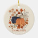 Rustic Fall Autumn Pumpkin Wildflowers Custom Name Ceramic Ornament