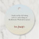 This product was just as I hoped it would be. I used these tags to go on the M&M favors for my brother and future SIL's bridal shower. An outline for the holes were already made in the tags, so I just needed to physically push the piece out to expose the holes in order to thread ribbon through. Overall, I am very happy with this product and would certainly order again if the occasion for these tags arises. The printing was perfect! The colors were just as pictured on the website.