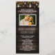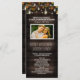 Rustic Fall Firefly Mason Jar Wedding Programs - features a rustic barn wood background with maple, oak and other leaves in fall colours -- red, burgundy, yellow, green and orange with string glowing lights through out. Mason jars filled with lights or fireflies are also added to the design.