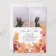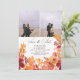 Announce your special day with this beautiful boho rustic fall-themed save the date card. The design features hand-painted autumn flowers in vibrant shades of orange, red, and gold, perfectly framing your engagement photos. The elegant script font adds a touch of sophistication, making it ideal for couples planning a romantic and rustic wedding. This customisable template allows you to add your personal details, ensuring it matches your unique wedding style.Add an extra photo at the back!