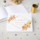 This wedding guestbook features rustic watercolor flowers and pumpkins in burnt orange, gold, terracotta, burgundy, blush, beige and brown pampas grass with a gold diamond shape frame. For more advanced customisation of this design, please click the "customise further" link. Matching items are also available.