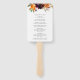 Rustic boho floral wedding program hand fan featuring a watercolor painted floral bouquet with warm and earthy shades of burnt orange, terracotta and deep burgundy along with some greenery. This elegant program with the rich shades of autumn is great for a fall wedding.