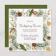 Rustic Thanksgiving Dinner invitation, featuring a simple fall winter forest arrangement with wild flowers, earthy mushroom, pine tree leaves, pinecone, and fall leaves.