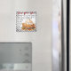 Embrace the spirit of fall baking with this delightful "Pumpkin Pie Recipe" magnet. The design showcases a mouthwatering illustration of a freshly baked pumpkin pie, adorned with swirling whipped cream and a decadent caramel drizzle. A classic black and white gingham pattern provides a charming backdrop, while the full pumpkin pie recipe is elegantly presented in a whimsical script. This magnet is not only a decorative piece but also a practical reminder of how to create the perfect autumnal dessert. It's an ideal accent for kitchens, gathering spaces, or as a thoughtful hostess gift for Thanksgiving or any fall occasion.
