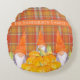 Rustic Fall Gnome pumpkin orange plaid Round Cushion