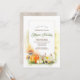 Pumpkins, sunflowers, daisies, wheat, colourful leaves rustic fall birthday party invitations