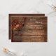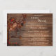 A bridal shower invitation featuring an autumn tree with colourful leaves, romantic candle lit lanterns and roses on a rustic wood background.