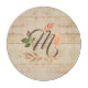Digital art design features wood plank background with watercolor leaves wreath and customisable script font monogram