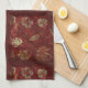 Rustic Fall Leaves Primitive Gingham Tile Burgundy Tea Towel