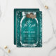 Rustic teal wedding save the date card featuring a mason jar and burlap hearts against a barn wood background. Easily personalise this romantic rustic teal wedding save the date online. Matching items available to complement this teal wedding save the date card.