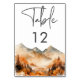 Rustic Fall Mountain Scene Watercolor Wedding Table Number