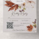 AVAILABLE WITH OR WITHOUT A QR CODE TO SCAN. This design features soft autumn wreath of tan, brown, rust, purple and cream on a soft, light grey background. Add a QR code to your invitation so that gusts can quickly access your wedding Website for details, directions, menu options, and more, or add your gift registry Web URL. Personalised All-In-One invitations are a unique combination of both a beautifully printed custom invitation with an easy to tear off perforated RSVP postcard. And they are so easy to use! You simply fold, then seal the back flap with the three included clear stickers, and mail. And when your guests receive your custom invite, they just tear the perforated RSVP Card off and drop it back in the mail to you!