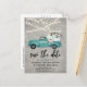 Rustic Fall Pumpkin Floral Lights Save the Date Announcement - This rustic save the date features an adorable teal vintage truck with fall pumpkins & flowers in the bed and twinkling string lights hanging overhead. The back of the invitation features your beautiful photo. You can easily personalise your Save the Date using our easy to use design tool. If you need assistance personalising your Save the Date, please don't hesitate to reach out.