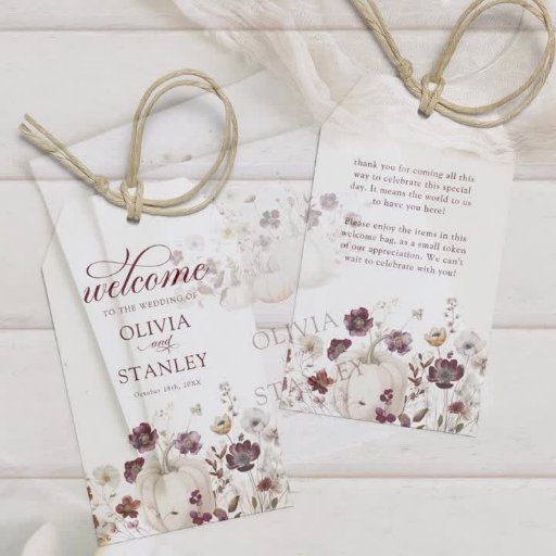 Discover the charm of fall in our Simplistic Fall Wedding Favour Bags. Featuring an elegant white background, rustic watercolor wildflowers and pumpkins. Plus the words "thank you" in a script font, the bride and grooms name, and the wedding date.