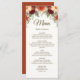 Enhance your wedding reception with this elegant Rustic Fall Wedding Menu Card, designed with watercolor burgundy roses, burnt orange dahlias, eucalyptus greenery, and golden autumn leaves. Perfect for autumn weddings, this menu card complements your invitations, table numbers, and other stationery in the Rustic Fall Wedding collection.