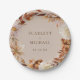 These elegant wedding paper plates feature hand-painted watercolor burnt orange and terracotta leaves, cream and beige dahlias, and beautiful rust-coloured roses on a taupe background with the bride and groom's first name and wedding date. Find matching items in the Taupe Autumn Romance Collection.