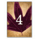 Here are custom table card numbers that you can personalise for your rustic fall wedding theme... Each card is designed with a unique hand painted autumn leaf atop of an old, worn out parchment paper texture. Many table numbers with different autumn coloured leaves are available in this rustic fall themed collection, along with matching invitations. Category: table number cards for your guest tables. Colours: tan, brown, deep dark purple, and plum.