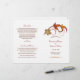 Fall themed wedding ceremony program design with ivory background features elegant scrolls and leaves in autumn colours. Personalise the custom text for your bridal party, ceremony information, and thank you message. Note: these text weight paper programs arrive flat and require folding to assemble.