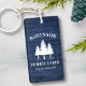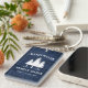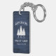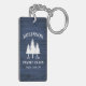 Accent the keys to your holiday vacation home with beautiful, rustic themed 2 sided keyrings. This keychain is rectangle shaped, made of durable acrylic and features your personalized name and "Family Cabin", cottage, lodge or other desired text along with its established date and location. The custom, unique design features a white silhouette of pine trees with rustic style typography on a print of wood planks in rich shades of blue. To see more designs like this, feel free to visit my store here at "Zazzle.com/Rustic_Charm". Thanks.