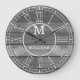 Monogrammed wall clock with a dark brown wood texture background and roman numeral. Personalize the family clock with your family name and monogram initial letter.
