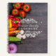 Elegant family cookbook with a rustic look- Background on front is photo of rustic wood with border of fresh produce vegetables on the left, including bell peppers, red onion, carrots, and tomatoes. Front has elegant lettering that has custom family name in script and reads 'cookbook' underneath. Framed by antique, vintage style scroll borders on top and bottom in white. Back is matching rustic wood. Note: All images are printed. Inside pages printed specifically for recipes. Perfect family gift for family members at Christmas, Mother's Day gift, for family reunions, bridal shower gift, housewarming gift, gift for new bride, and for saving those precious Mum's recipes. Country chic, but rustic at the same time. Will appeal to many different tastes and styles. Will look great in both a rustic country kitchen, or elegant, modern kitchen decor. Visit our online Zazzle.com/angela65 shop for more kitchen designs and family recipe notebooks.