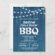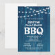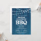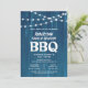 This rustic family reunion invitation features a rustic blue background accents with strings of lights.