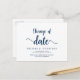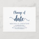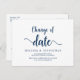 This is the modern minimal clean rustic farm design themed, in Navy Blue font, Wedding party invitation Rescheduled (postponed / postponement) postcard (Change of Plans) . It is the perfect and elegant way to make the reschedule announcement to your friends and family.