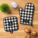 Rustic Farmhouse Black and White Gingham Oven Mitt & Pot Holder Set
