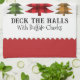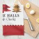 Celebrate the holiday season with this charming rustic farmhouse-style tea towel. Adorned with three Christmas trees decorated in festive buffalo check patterns in shades of red, green, and gold, this tea towel will add a touch of country charm to any kitchen. Featuring two customisable text areas with the phrase, “Deck the Halls with Buffalo Checks,” you can personalise this design with your own text or add a name to create a unique gift. Perfect for home chefs, cooking enthusiasts, and anyone who loves to entertain, this tea towel makes a delightful addition to holiday decor and a thoughtful present for family or friends.
