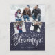Rustic farmhouse Christmas blessings 3 photos navy Holiday Postcard