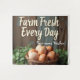 Decorate your kitchen with this farmhouse eggs wall art print. Featuring rustic line art of eggs in a basket and the editable quote “Farm Fresh Every Day – [Name]’s Kitchen”, it makes a warm and inviting farmhouse-inspired wall décor piece. Perfect for kitchens, dining rooms, and rustic cafés.