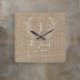 Personalised family vintage classic white monogram, name, and established year chic light brown beige and white rustic country farmhouse style burlap wall clock. +++++++ A modern keepsake gift for weddings, anniversaries, housewarmings, Thanksgiving, Christmas, or any other occasion.