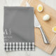 greyscale and white gingham,rustic farmhouse custom monogram,personalised customised kitchen towel,personal name check pattern,elegant checked chequered dishcloth,add your own text,grey family name surname,grey initialled initial,classic traditional simple chef,classy cook wheat sheaf