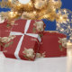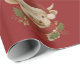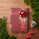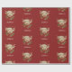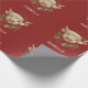 This festive wrapping paper features a Highland cow in embroidery style, wearing a Santa hat and scarf on a red background. Warm brown tones and rustic details add farmhouse charm, making it a cosy holiday accent. AI-assisted design ensures handcrafted texture.