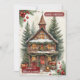 A rustic farmhouse is an experience. At the core of this holiday style is vintage texture, whitewashed wood, reclaimed planks, burlap ribbons, galvanised metal, frosted pinecones, and soft wool knits. The illustration has a country cottage with pine trees decorated with Christmas holly berry and a greenery wreath. Reverse side has a similar design. The card has warm greeting and wishes that can be personalised on front and reverse sides.