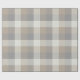 Neutral, rustic plaid wrapping paper in shades of tan, grey, and ivory.