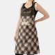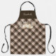 Thanksgiving dinner apron with a rustic and elegant design. The background is a warm brown plaid, decorated with watercolor-style white pumpkins, autumn flowers, dried leaves, and soft neutral florals. You can personalise it with your name. The overall mood is cosy, farmhouse-inspired, and perfect for fall gatherings. Perfect gift for anyone who is cooking and baking for Thanksgiving : mum, dad, grandma, grandpa, etc...