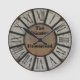 This antique looking clock will look fantastic in a rustic decor. With its bold Roman numerals and distressed look, it is sure to be a hit. This is not a metal clock it is just printed to look like it. Customize with your family or business name or what ever you like. Make it personal, make it special.